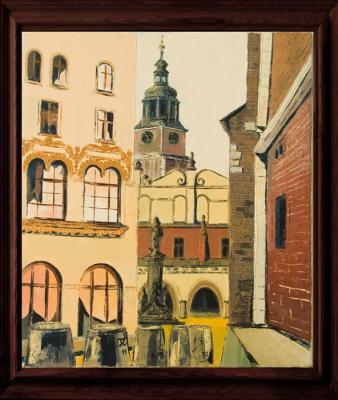 Kraków - widok z ul. Siennej na rynek obraz olejny, 34cm x 40cm Ukochać można człowieka, kraj, ale i miasto - mój ukochany Kraków... Daleki a jakże bliski.